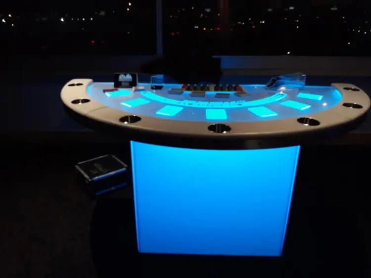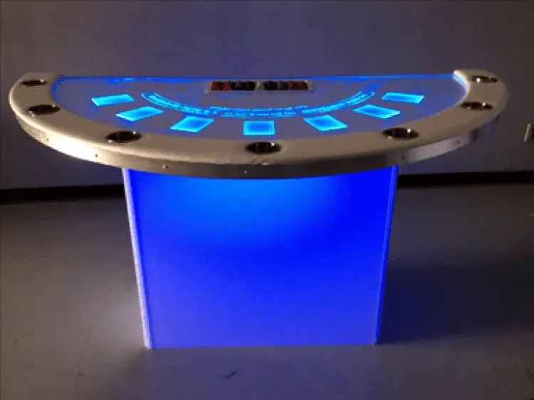Setup is hassle-free. We deliver, install, and break down the table, letting you focus on enjoying your guests and the atmosphere. Whether indoors, outdoors, or under a tent, this blackjack setup works for all venue types. It’s easy, reliable, and ready for fun.